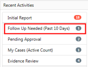- Click on the Follow-Up Needed link to review the Incident report and make the decision to create a Follow-up Case to the Incident, or close the Incident without a follow-up case.