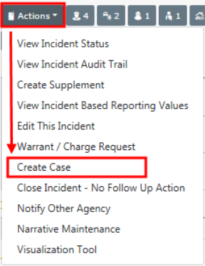 Create an investigative case directly from an initial unapproved Incident report. You must have the permission Create Case from Unapproved Incident to access this feature. Refer to your agency administrator for details.