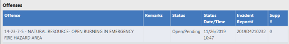 | 19. | Offenses that exist on Associated Incidents appear for convenience in the Offenses section as read-only. |