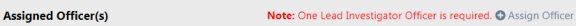 | 14. | Page down to the Assigned Officer(s) section. Click on the Assign Officer link to assign an officer. |