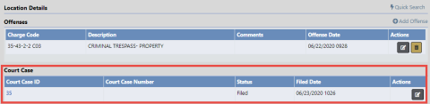 | 3. | Click the Court Case ID link to view the record, or click the Edit icon |