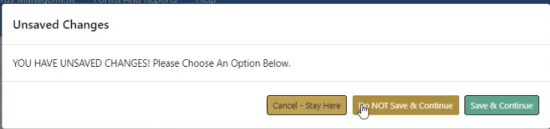 Remember, when prompted, you have the option to Save & Continue or NOT to save and continue.