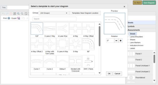 When entering diagrams, RMS provides helpful templates for completely illustrating the diagram. The user may start with a template or, with Google Maps integrated, the user may start with an address and use this as a guide for the diagram.