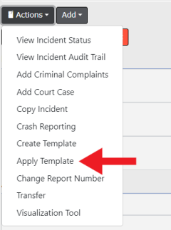 If your agency chooses to use this feature, authorized users (including users who have ownership of the incident to be edited) can create an apply templates to incidents for frequently used incident scenarios and details.