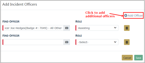 Click Save to add the officer to the Incident.