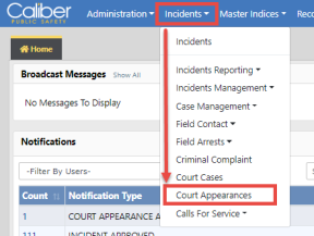 You must have Manage Court Appearances permissions to see the Court Appearances option on the list.