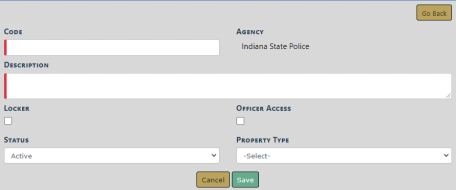 Click the Add Evidence/Held Property Locations button to open the Add Evidence - Held Property Location window to add another location record.