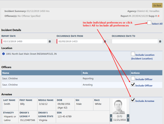 | 4. | Select the items on the Incident Associations form to include on Incident Report from the Field Arrest. |