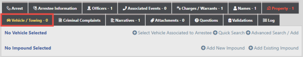 Note:  When adding an existing Impound record, the vehicle associated with the Impound is added to the Arrest.
