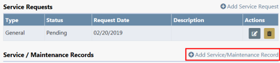 4. Page down and click Add Service/Maintenance Record on the Edit Fleet Vehicle window.