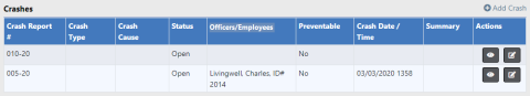 b. On the Edit Vehicle screen, page down to the Crashes section of the fleet vehicle record.