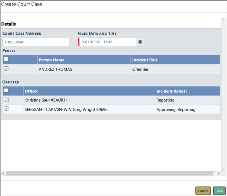 Click Save to create the Court Case and associate to the Incident Report supplement automatically.