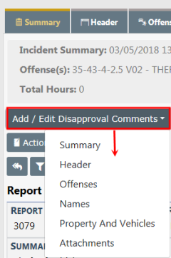If applicable, you can add disapproval comments to various sections of the incident report two ways.