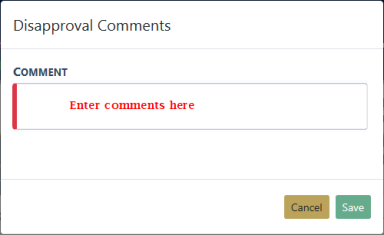 Click the Add/Edit Disapproval Comments, then select an option from the list to incorporate disapproval comments to various sections. Add your comments then click Save.