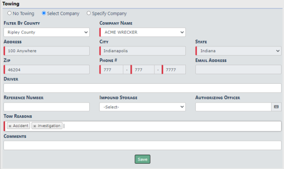 Note: The Towing Agency defaults to your agency and should not be changed.