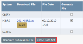 b.   Agencies reporting by Summary UCR Reports will then click the Close Data Set button on the right side of the page. Note the number in the Download File name, as this will help you locate it later when running UCR Reports.  You will also be able to locate the correct file as the Month and Year will be added next to the file name along with your ORI.