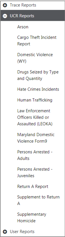 a.   On the left is a list of Report Category, click on the UCR Reports category banner to display the UCR available reports in alphabetical order.