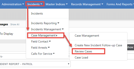 1. From the Incidents menu, select Case Management, then Review Cases to open the Case Search screen.