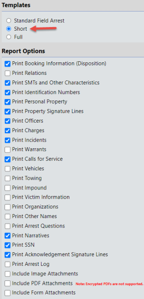 5. Select Arrest Image Options, if applicable, by clicking Select All to include all existing arrest images on the report, or click Select None to exclude all arrest images.