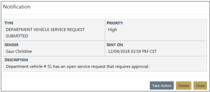 If you chose to save, a Notification is sent to the Requested by User upon approval of the Service Request. The Requested by User then clicks on the Notification and opens the details to Review, Reply, or Take Action.