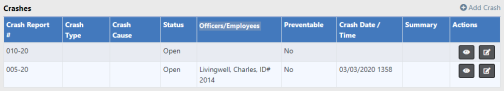 e. On the Edit Vehicle page, page down to the Crashes section of the fleet vehicle record.
