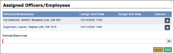 Officers/employees assigned or previously assigned to the vehicle the past twelve months appear in the list.