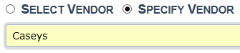 If applicable, the Vendor gives you the option to Select a value from a list, or Specify your own Vendor. Click on one of the options, then select or enter your answer in the text field provided.