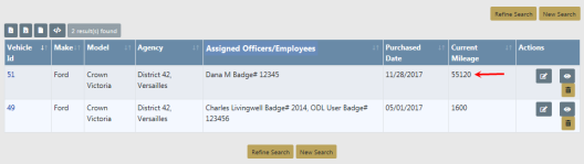 Note: The Current Mileage displayed on the Vehicle Tab looks at service maintenance records (excluding crash report service maintenance records) and fuel/oil/mileage records to find the max mileage entered for the vehicle.