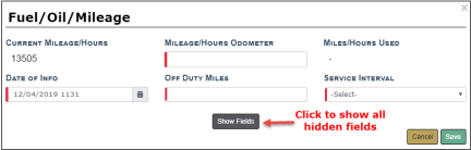 2. Click Save to apply the changes, or click Cancel to return to the Fuel/Oil/Mileage Tab without saving.