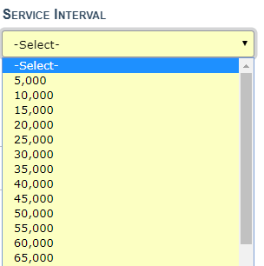 Service Interval allows you to select the number of miles until the next service. The list values are configured by the agency. For details, refer to your administrator.