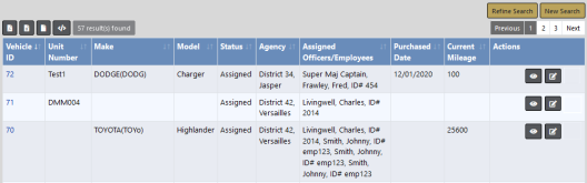 1.   Locate the vehicle you want to edit then click on the Edit icon in the Actions column of the Search Results window to open the Edit Fleet Vehicle page.
