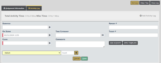 On Scene:  Current date is entered by the system, but you must enter the time you arrived on scene.