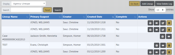 You can print, view, edit, or delete Lineups from the search results, providing your user account has the proper permissions to do so.