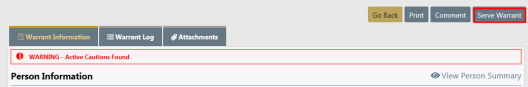 From the Edit Warrant page select the Serve Warrant button at the top right or bottom of the page to display the Serve Warrant page.