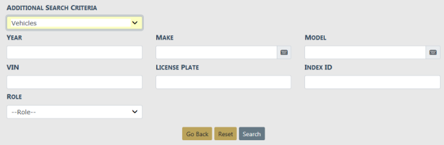 The Additional Search Criteria allows you to include information from a specific section, if needed. Additional search fields will appear if you choose one of the available options from the list.