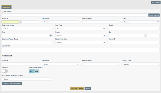 First search for an existing address to determine if the address already exists before adding a new one. It is recommended that you search by individual fields rather than the Quick Search field. See Adding Address for further instructions on adding addresses to the Master Index.