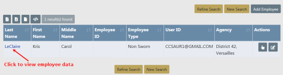 b. Enter the search criteria into the fields provided, then click Search to display the Employee Search Results.