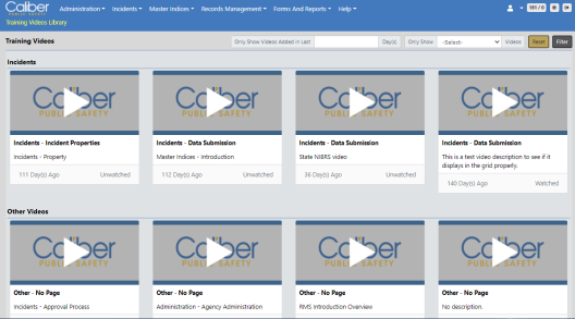 For example, if the agency administrator turns the feature on and they configure the Incident Category video to pop-up on the Incidents page, the Incident Category page displays under the Incidents category.