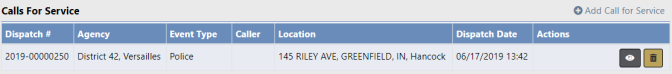 under the Actions heading, click the Add Call for Service link to search for and associate an existing call for service record to the incident, or click the delete icon