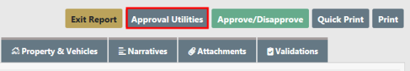 Optionally, click on the Approval Utilities button on the top right of the page to view Warnings and search for offense or NIBRS codes using the Offense Glossary.