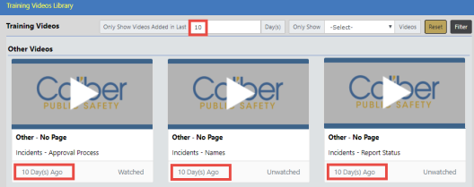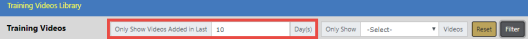 | 2. | Click Filter to display only the videos that were posted to your Training Video Library within the days specified. |
