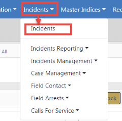 Case Management functions are centrally located under the Incidents Menu on top Navigation Bar.