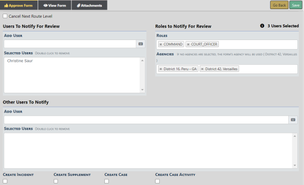 | 3. | Add other Users to notify others from review routes for awareness only. |