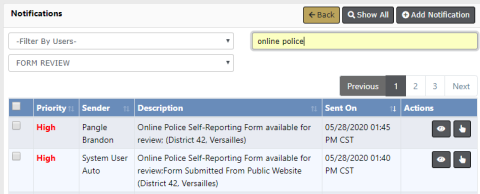 When a new public or non-public form is submitted, a notification appears on the Online RMS Home Page within your Notifications queue.