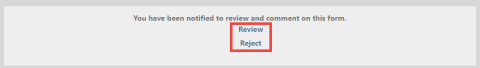 | 3. | At the top section of Tab 1, Reject or Review (Accept) the form by choosing one of the options below. |