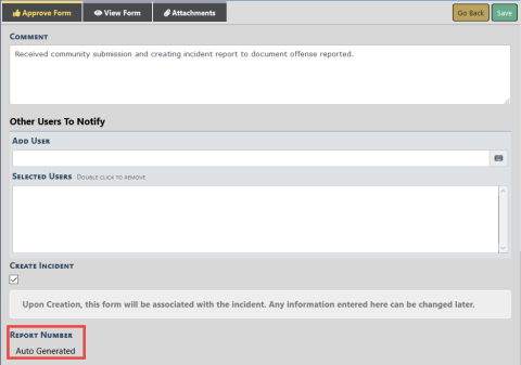 | 3. | To create an incident, check the Create Incident box on the Approve Form tab. |