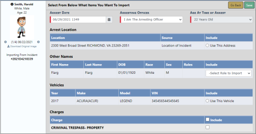 Beginning with Online RMS 11.7.0, with appropriate permissions, you can create a Field Arrest and import data from an existing Incident or Calls for Service record into the arrest record, avoiding unnecessary data entry. This process also associates the Field Arrest to the Incident or Calls for Service record automatically.