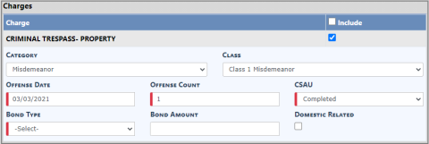 The Arrest Date defaults to today's date. Click into the field and select another date if needed. |