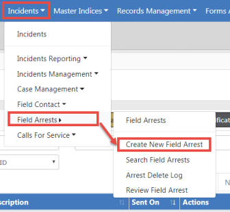 1. Initiate a new Field Arrest from the Incident top menu.