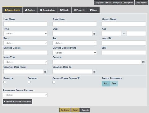 1. The Person Search screen opens. This searches through the Master Person Index records to locate existing records that match your entered criteria.